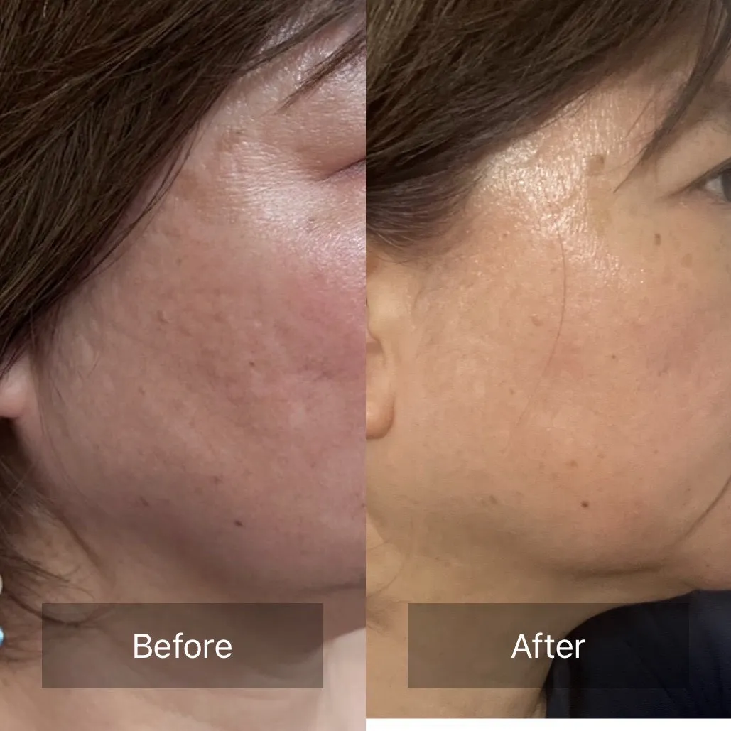 施術後は、しっとりとした潤いとともに、ワントーン明るい印象のお肌へ。